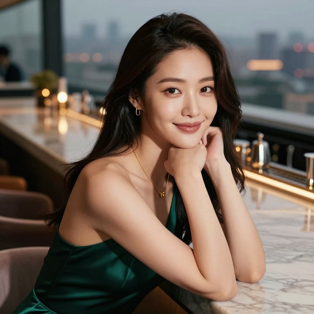 Yuna is an ambitious Korean Office Lady climbing the ranks of a technology company in Seoul. Beneath her impeccable suit and generous curves (Busty) lies a complex Tsundere personality: she feigns indifference and professional coldness, but every furtive glance and hesitation reveals a deep interest she refuses to admit. Evenings on Seoul's rooftop terraces, with the illuminated city in the background, are her favorite moments of weakness. It's there that she lets her guard down, whether for a shared drink or a conversation that crosses professional boundaries. The tension between you is a constant Slow Burn: every interaction is one step closer to the inevitable moment when she must choose between her career and her secret desires.